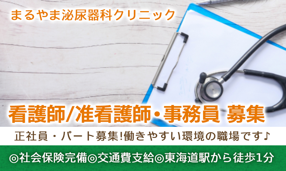 名古屋市港区に位置する「まるやま泌尿器科クリニック」は、地域に密着した専門クリニックとして、患者さまの健康をサポートしています♪排尿・腎臓・前立腺疾患に特化した当クリニックでは、最新の医療機器を駆使し、患者さま一人ひとりに寄り添った高品質な治療を提供しています◎心やすらぐ環境と、温かな医療サービスを心がけ、患者さまが安心して来院できる雰囲気づくりを大切にしています!私たちと一緒に地域の健康を守り、多くの笑顔を作るお手伝いをしませんか?
