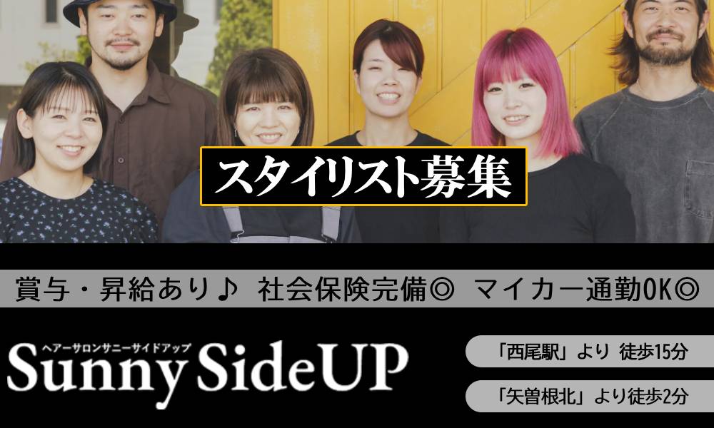 西尾市/Sunny Side Up|スタイリスト募集◎年間休日127日&土日休みもOK♪
