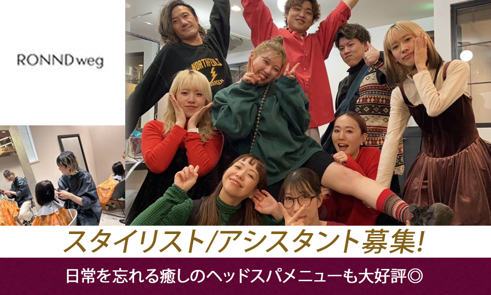天白区の地下鉄駅前2店舗 原駅前、平針駅前。天白区2店舗RONND、スタイリスト、アシ同時募集!