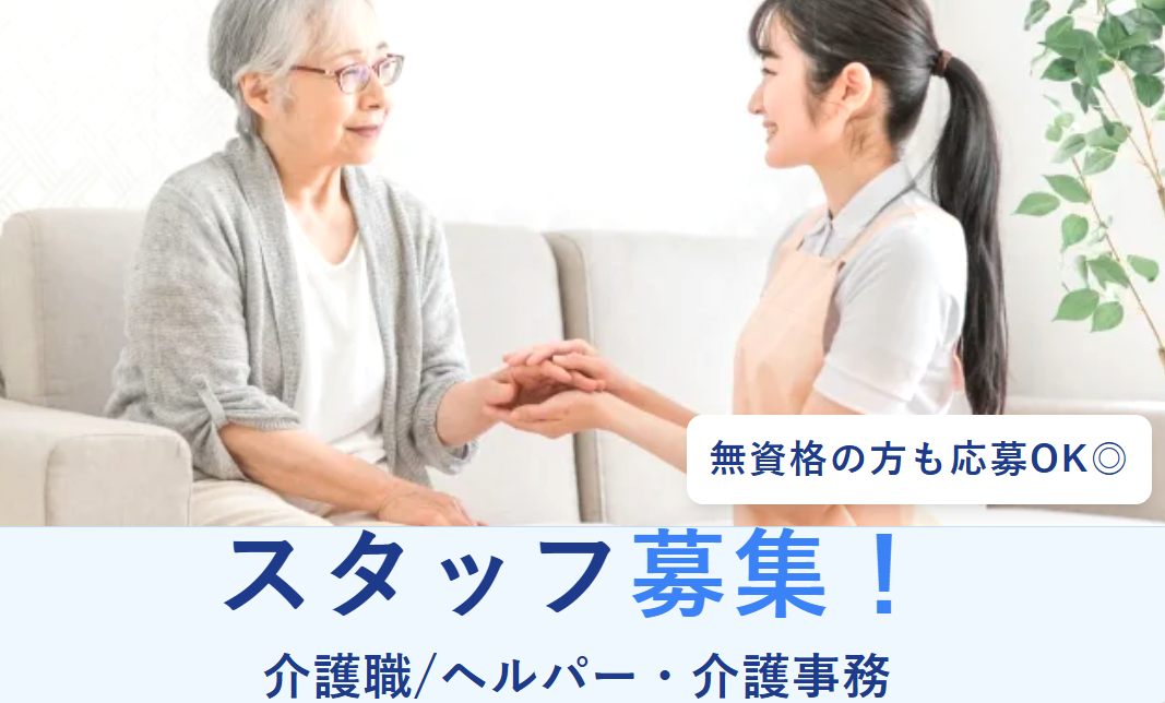 | 資格 | 実務者研修(旧ヘルパー1級・基礎研修)、初任者研修(旧ヘルパー2級)、介護福祉士 ※無資格の方も応募可能 |