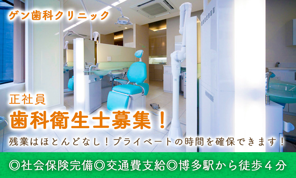 社会保険完備★土日祝休み◎年間休日120日以上!博多駅徒歩4分の歯科クリニックで歯科衛生士募集♪