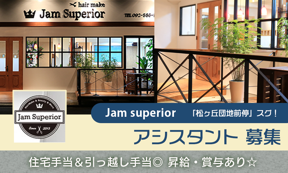 福岡・松ヶ丘団地前◎Jam Superiorで美容師アシスタント募集!住宅手当あり♪