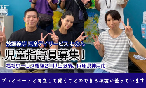 新規オープンの放課後デイサービスで遊びを支援する児童指導員募集!福祉サービス経験2年以上必須。兵庫県神戸市。時給1,200円~1,500円。