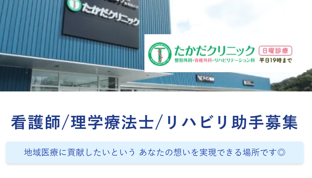 神戸市須磨区◎たかだクリニックで看護師・理学療法士・リハビリ助手を募集!