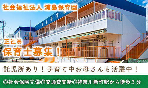 浦島保育園で保育士を募集中◎託児所完備で育児と仕事を両立しませんか!安心の環境で働けるチャンス♪