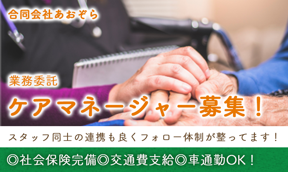 資格 | 介護支援専門員(ケアマネジャー) 普通自動車運転免許(AT限定可) ケアマネジャー経験 |