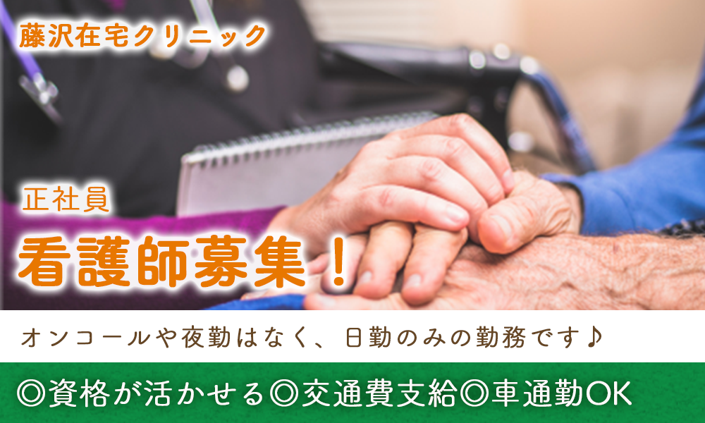 【神奈川県・藤沢駅】徒歩5分◎★★運転免許不要&夜勤なしでオンコールもなしの訪問診療サポート★★賞与年2回♪&入社お祝い金♪新しく可愛いデザインのユニフォームも導入しました♪ブランクや在宅看護未経験の方でも安心の体制を整えております◎