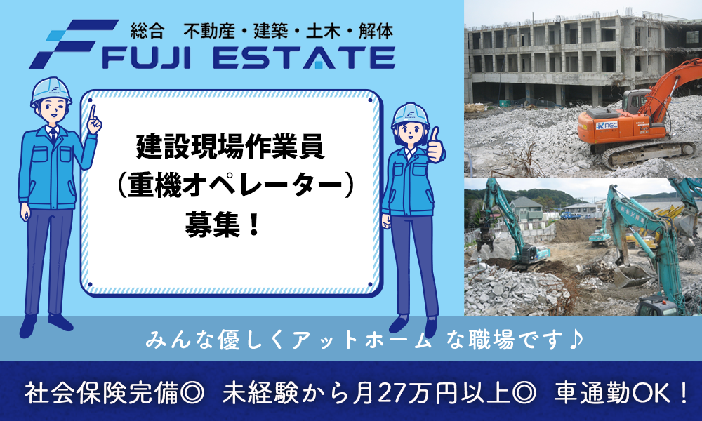 平塚市/株式会社フジエステート|建設現場の重機オペレーター募集!未経験OK◎