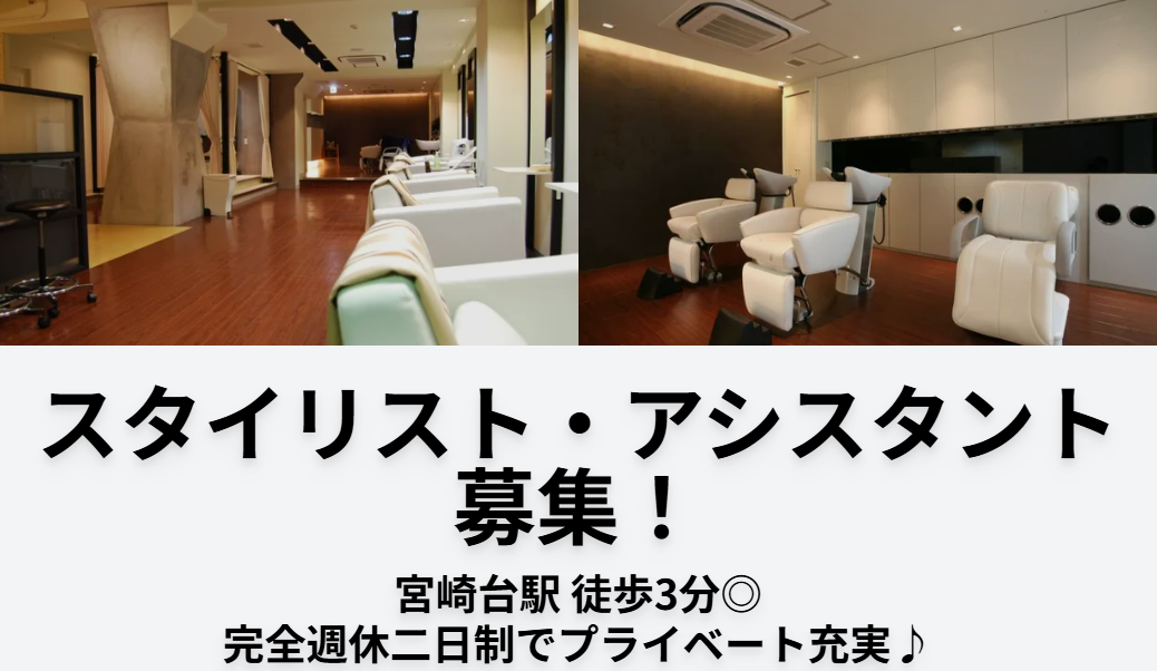 宮崎台駅徒歩3分◎美容室アレイズでスタイリスト募集!週休2日制◎歩合給あり◎メリハリ大事にできる環境です♪