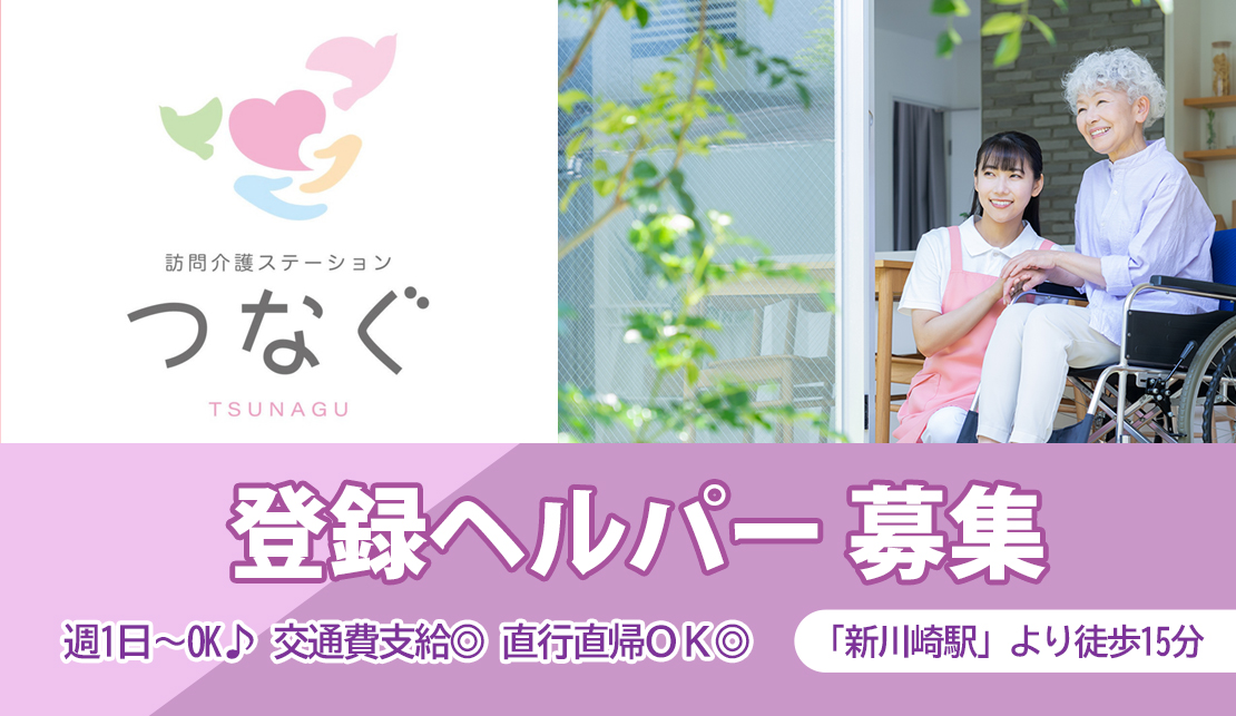 川崎市幸区◎登録ヘルパー募集!週1日~・直行直帰OK【一般社団法人つなぐ】