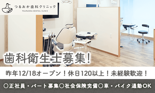 歯科衛生士募集○つるおか歯科クリニックは、予防歯科や最新医療機器と快適な職場環境を提供します。多様な働き方に対応!