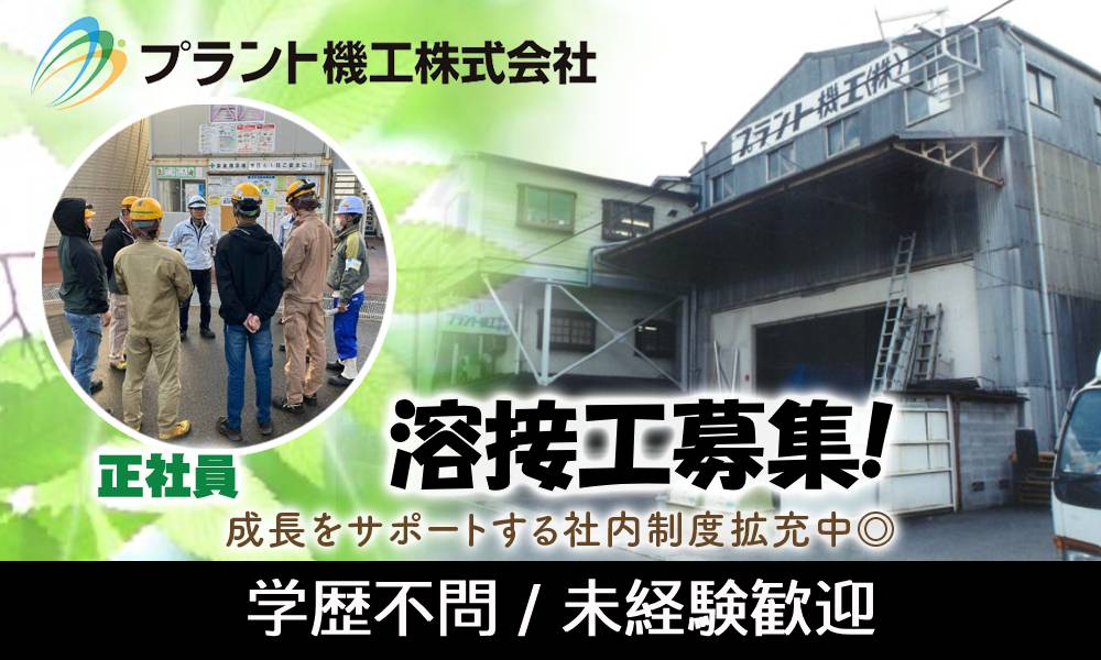 高槻市◎プラント機工株式会社で溶接工募集!土日祝休み・年休平均125日