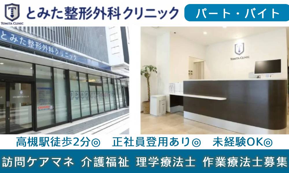 【大阪 高槻 医療】とみた整形外科クリニックの通所リハビリテーション(デイケア)分野をお任せするスタッフを募集します!訪問ケアマネ・理学療法士・作業療法士・介護福祉のパート・アルバイト◎正社員登用あり◎週2日~OK◎整形外科経験者歓迎!テナント拡張に伴う増員募集!地域に愛されるクリニックでスキルを活かせるお仕事!安定勤務◎子育て世代の方も歓迎◎