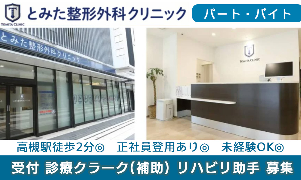 【大阪 高槻 医療】とみた整形外科クリニックの受付・診療クラーク(補助)・リハビリ助手パート・アルバイト募集中!正社員登用あり◎週2日~OK◎整形外科経験者歓迎!テナント拡張に伴う増員募集!地域に愛されるクリニックでスキルを活かせるお仕事!安定勤務◎