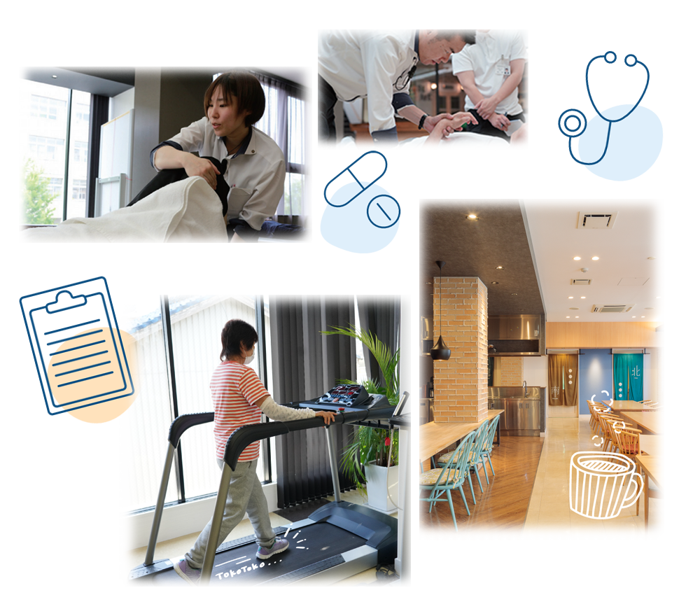 一般内科、整形外科、リハビリテーション科、精神科、訪問リハビリ、心療内科、在宅医療など