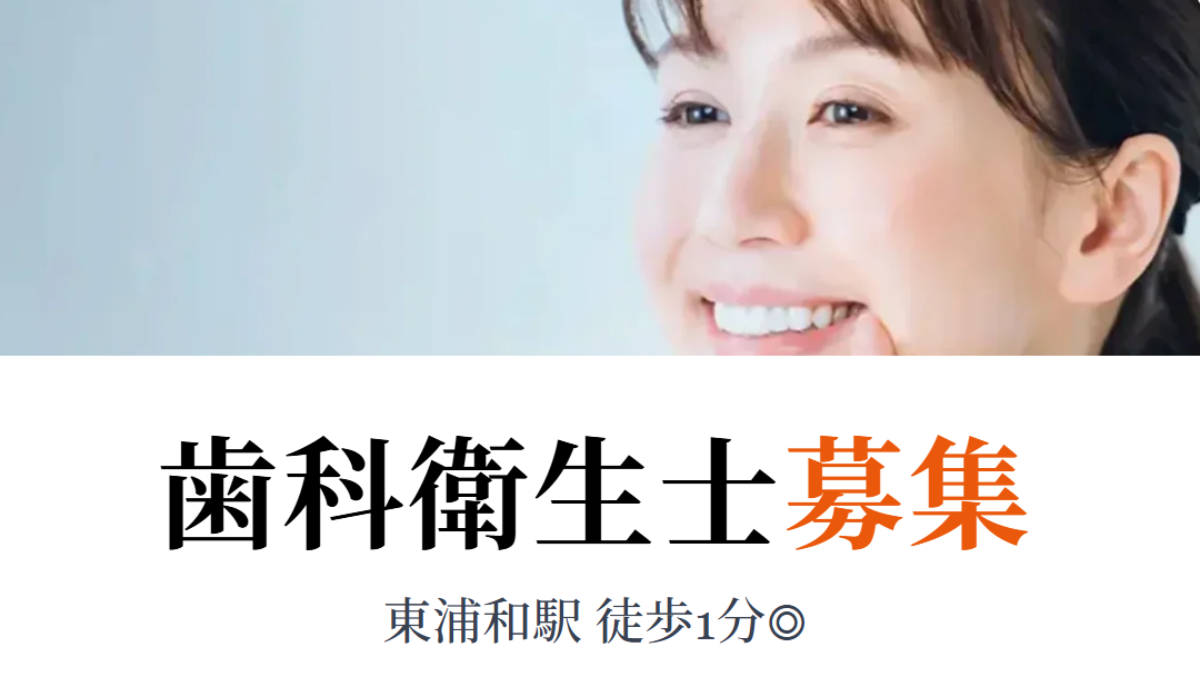 さいたま市緑区・東浦和駅 徒歩1分!駅近で通勤便利な環境です!社保完備で保障も安心☆この度当院で歯科衛生士さんを募集致します!当院はスウェーデン式の予防的治療を行っており働きながら経験を積むことが出来ます!あなたからのご応募お待ちしております!