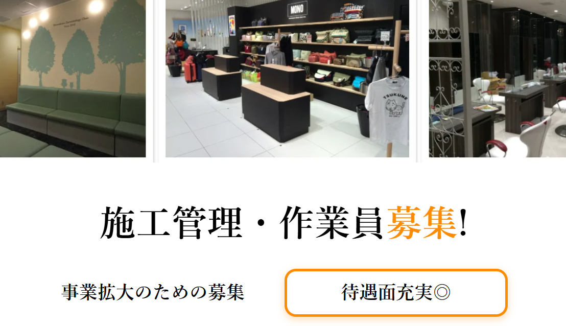 【川口市】(株)日本工房|店舗内装の施工管理・作業員募集!月給32万~740万円も可◎