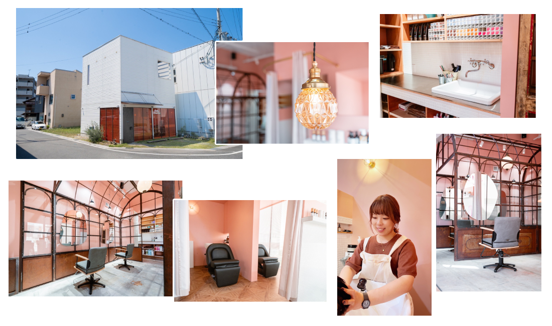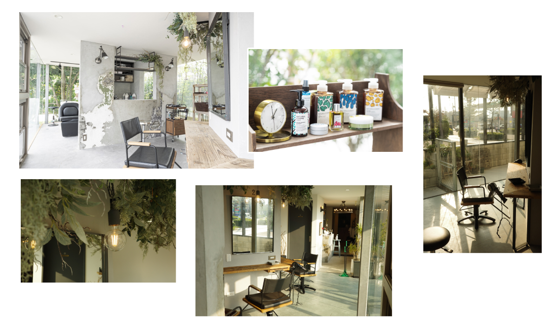 他の美容室ではあまりないようなヴィンテージのガーデンハウスをメインに使いオシャレな空間を演出し自慢できる空間になっています。