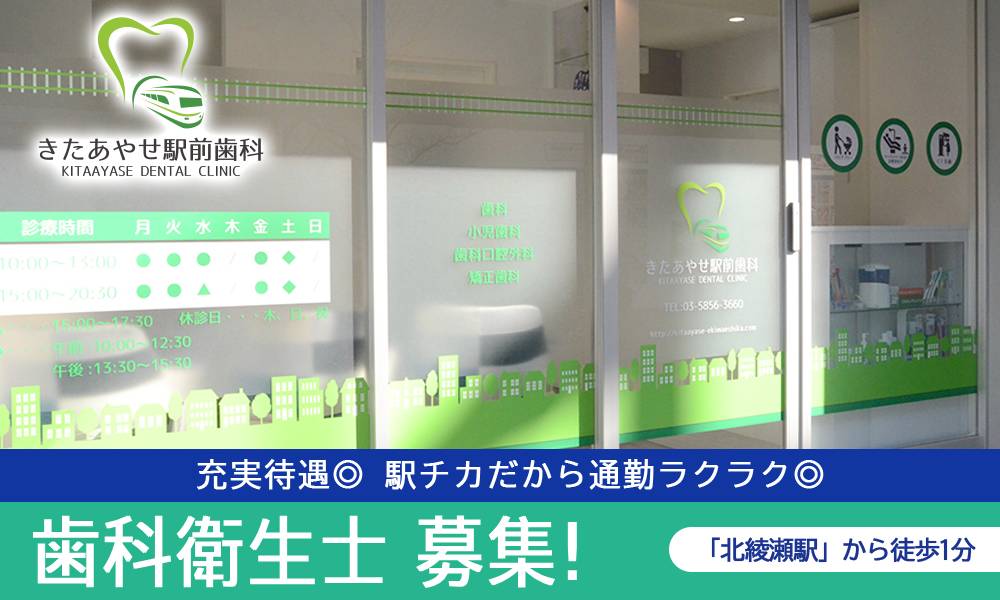 足立区・北綾瀬駅徒歩1分|きたあやせ駅前歯科で歯科衛生士求人|週休3日制可◎