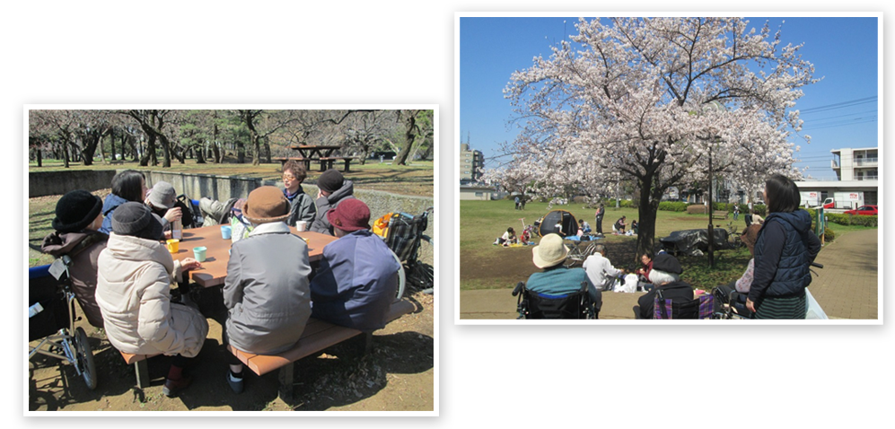 すぐ近くに窪東公園。利用者様の散歩に同行し、