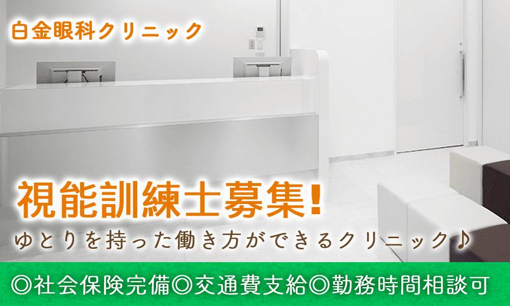 【港区・白金高輪駅】残業ほぼなし&週2日+半日休◎眼科での視能訓練士を大募集!子育てと両立しやすい勤務環境♪ 予約優先制のゆとりある働き方が可能◎プライベートとの両立◎