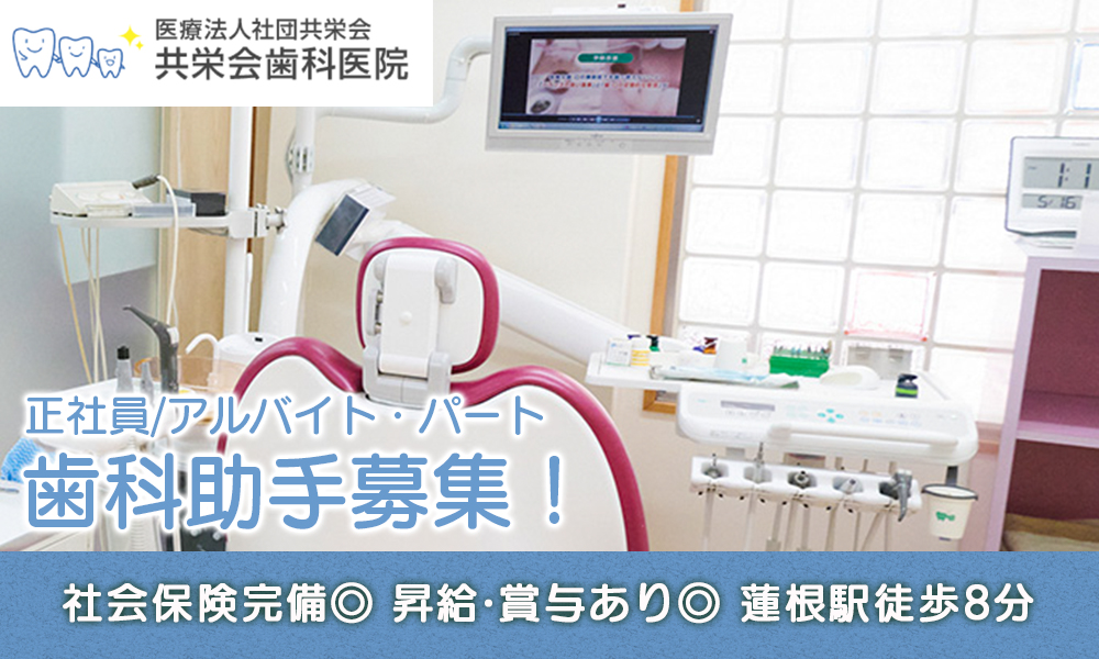 【板橋区・蓮根駅】歯科助手(正社員/アルバイト・パート)募集!社会保険完備/昇給・賞与あり/産休育休の取得実績あり【共栄会歯科医院】