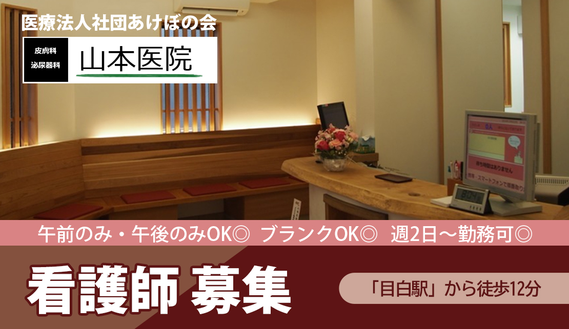 【看護師求人】時給2,020円~|週2日~勤務OK!午前のみ・午後のみ勤務可能◎ブランクOK|医療法人社団あけぼの会 山本医院(新宿区下落合)